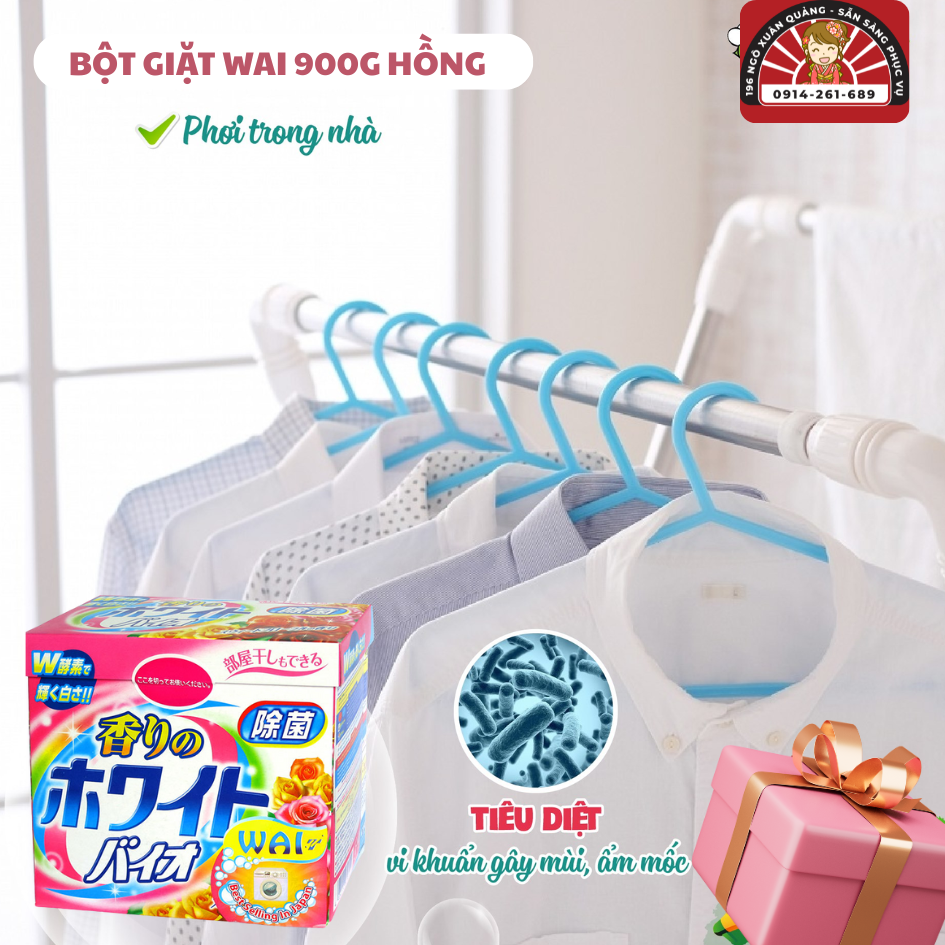 Hãy để Bột giặt WAI 900g Hồng chăm sóc quần áo của bạn – sạch khuẩn, mềm mại, thơm ngát mỗi ngày!