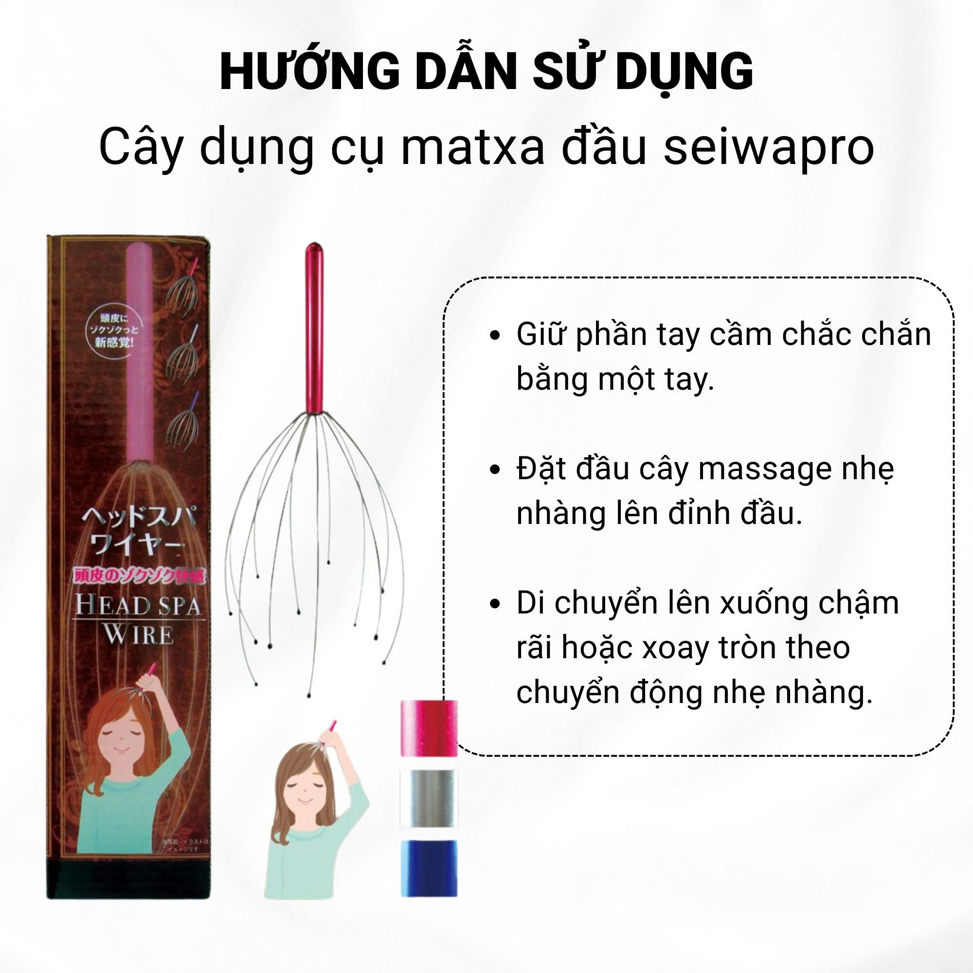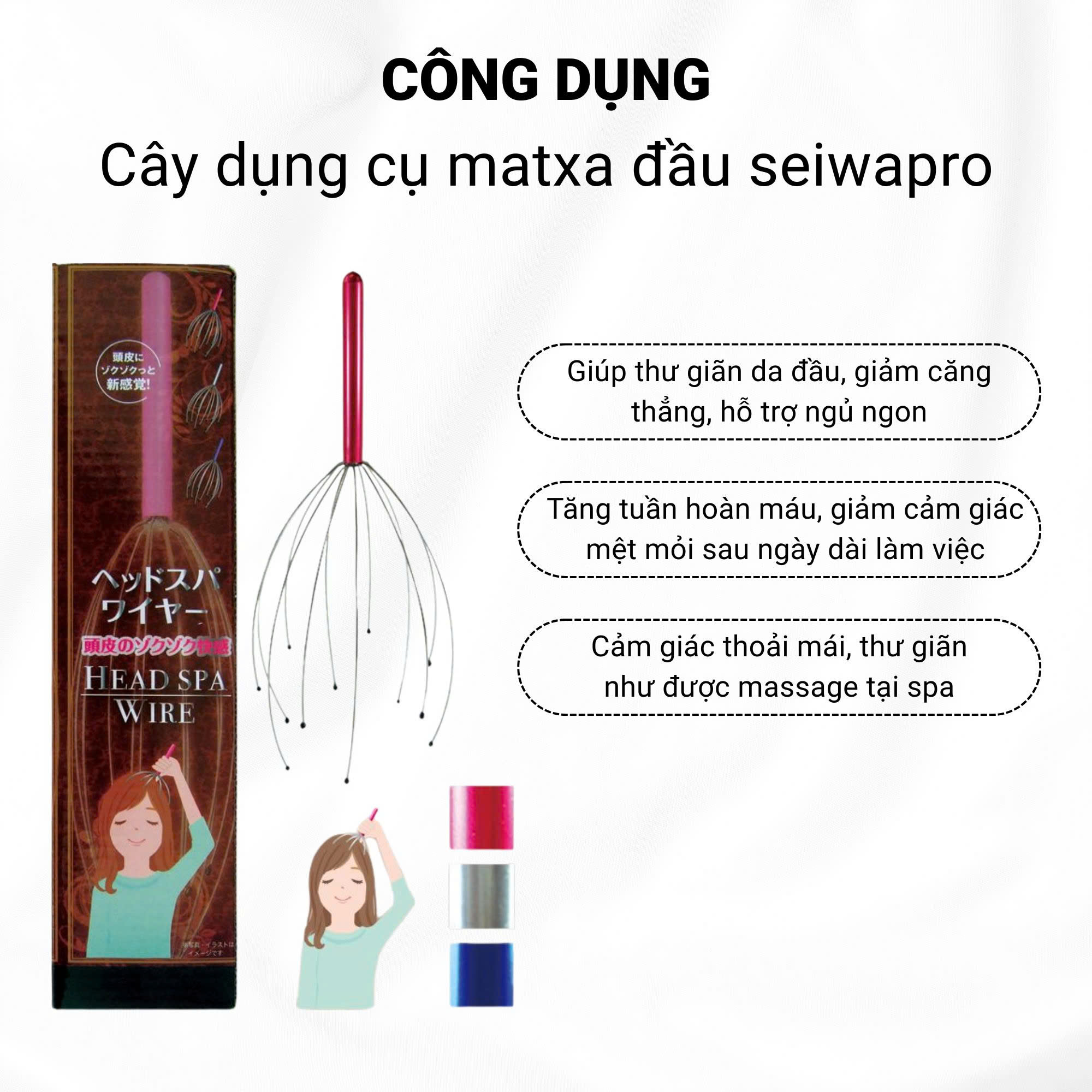 🔹 Hiệu quả thư giãn cao: Chỉ cần vài phút mỗi ngày, cây massage đầu Seiwapro giúp: