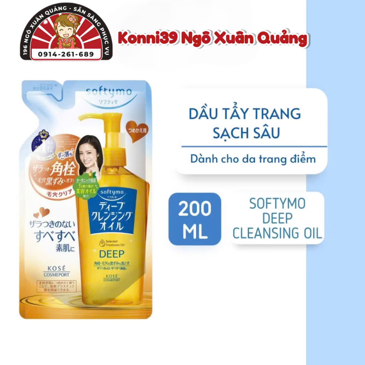 Dầu tẩy trang Softymo (Túi Refill 200ml) không chỉ giúp loại bỏ hoàn toàn lớp trang điểm, kể cả mascara chống nước, mà còn cung cấp độ ẩm dồi dào, giúp dưỡng trắng, chống lão hóa. Với công thức cải tiến từ 8 loại dầu thực vật, sản phẩm không chỉ làm sạch mà còn nuôi dưỡng làn da mềm mại, rạng rỡ.