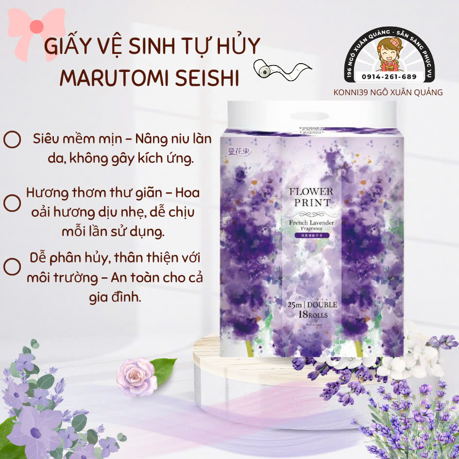 Giấy Vệ Sinh Marutomi Seishi Hương Hoa Oải Hương - Mềm Mại, An Toàn, Thơm Dễ Chịu