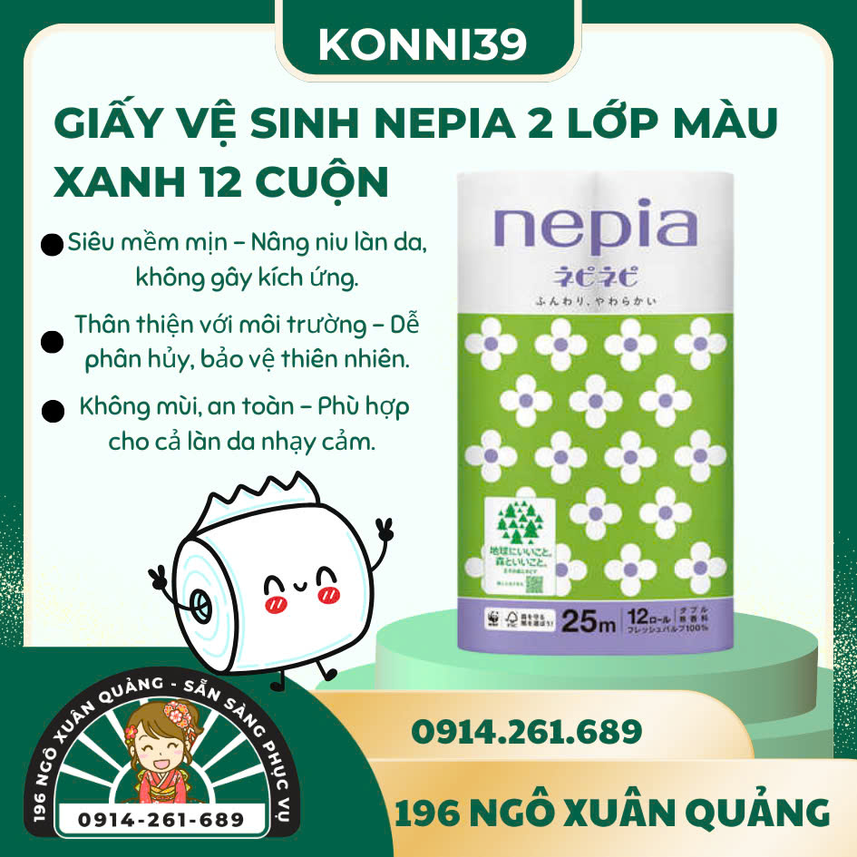 Trải nghiệm sự êm ái và an toàn với giấy vệ sinh Nepia 2 lớp màu xanh, sản phẩm cao cấp đến từ Nhật Bản, mang lại cảm giác dễ chịu cho làn da và bảo vệ môi trường.