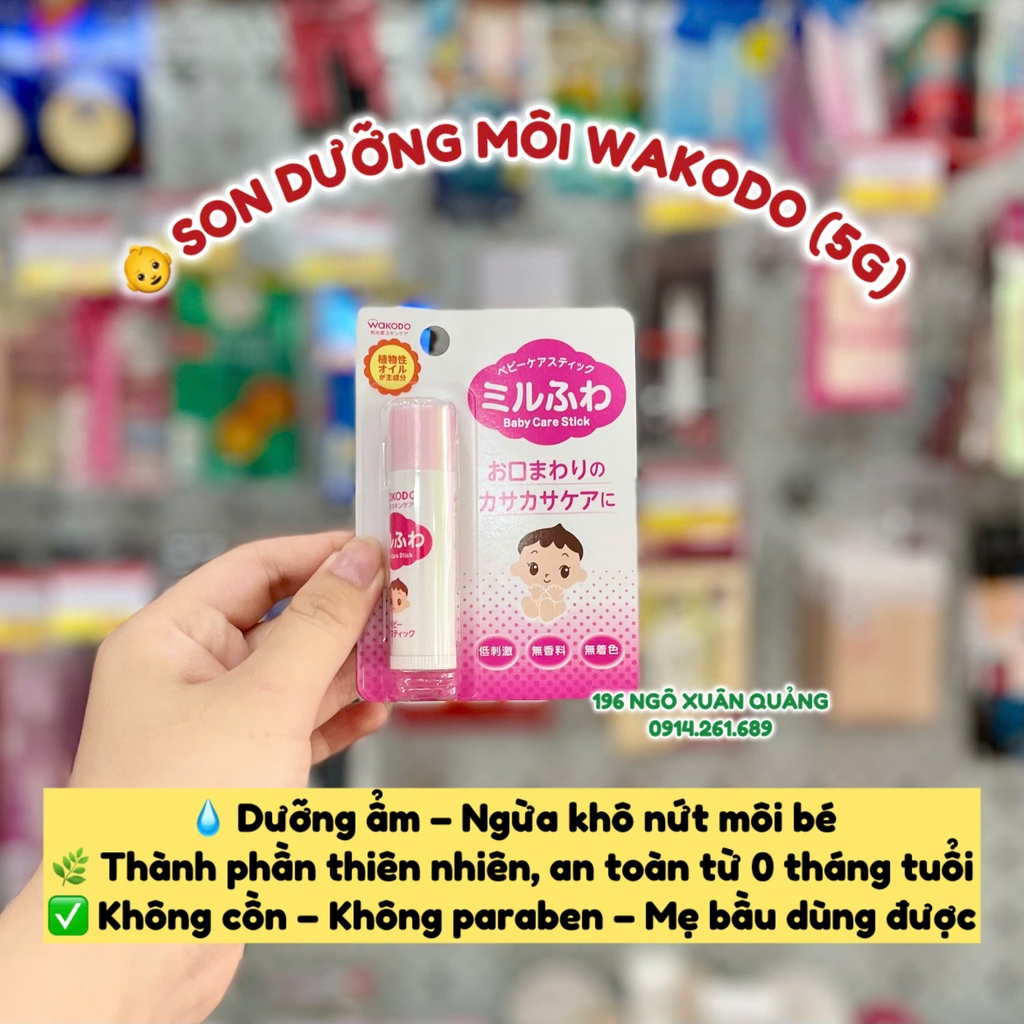 Sáp ong & ceramide 3: Tạo lớp màng bảo vệ, giữ môi bé mềm mại.