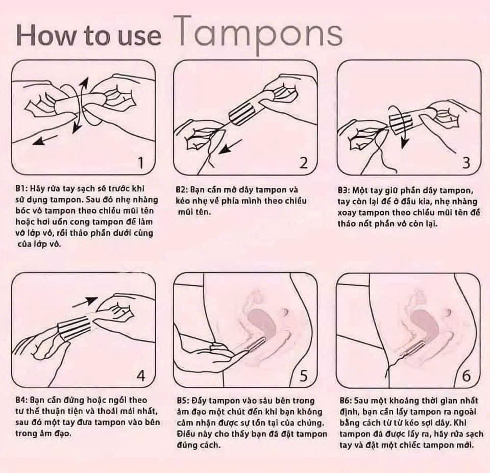 👉 Thay tampon sau mỗi 4–8 giờ tùy theo lượng kinh nguyệt.